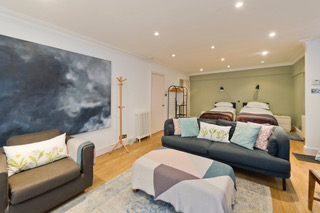 The Lower Studio is in contemporary, open plan style with either twin beds or a double bed with space for extra futons.